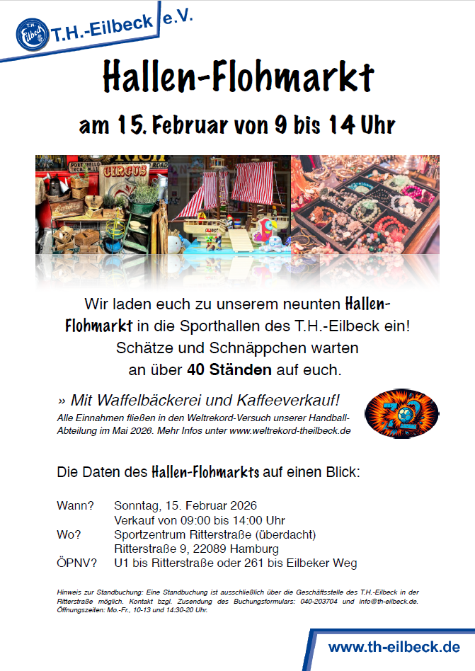 Wir laden euch zu unserem achten Hallen-Flohmarkt in die Sporthallen des T.H.-Eilbeck ein!